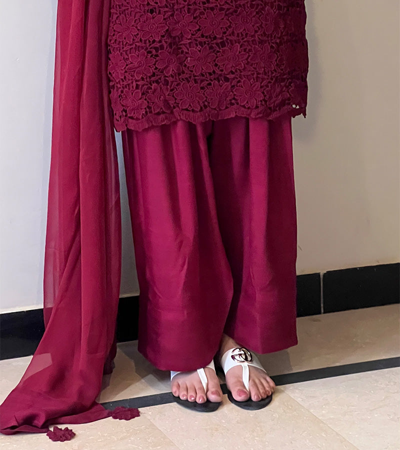 Farshi Shalwar: Made from smooth and luxurious Raw Silk, offering comfort and a rich texture.