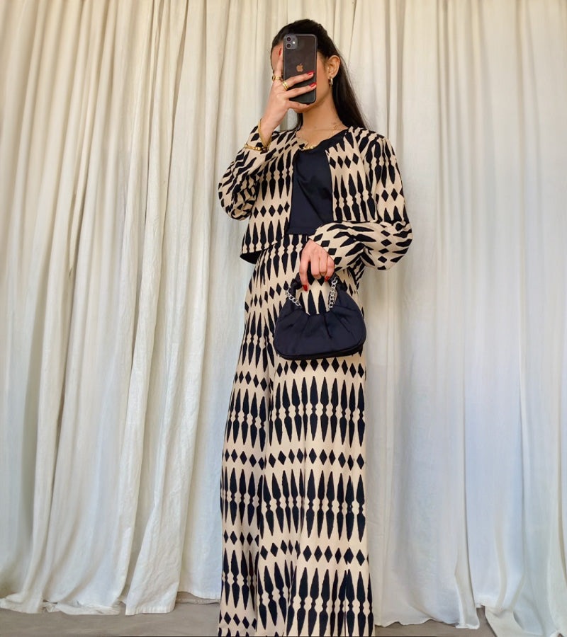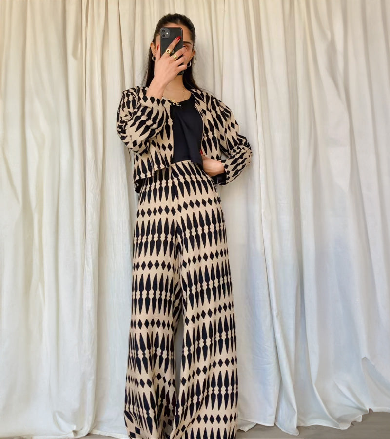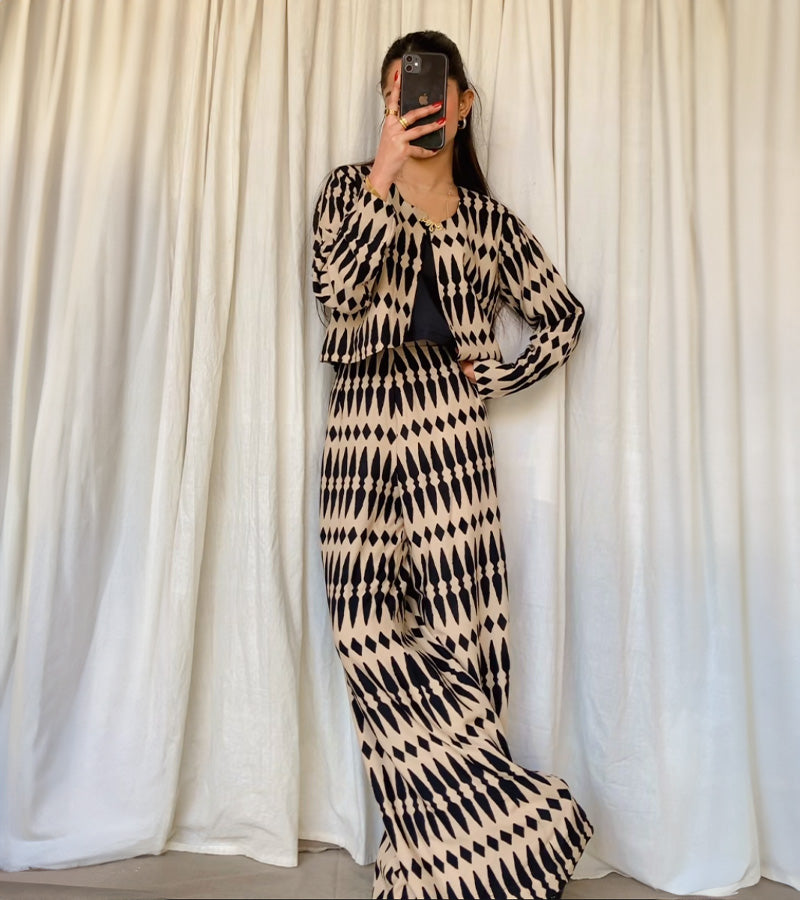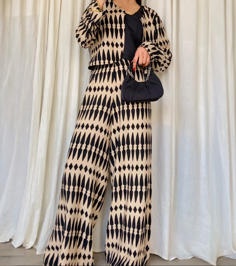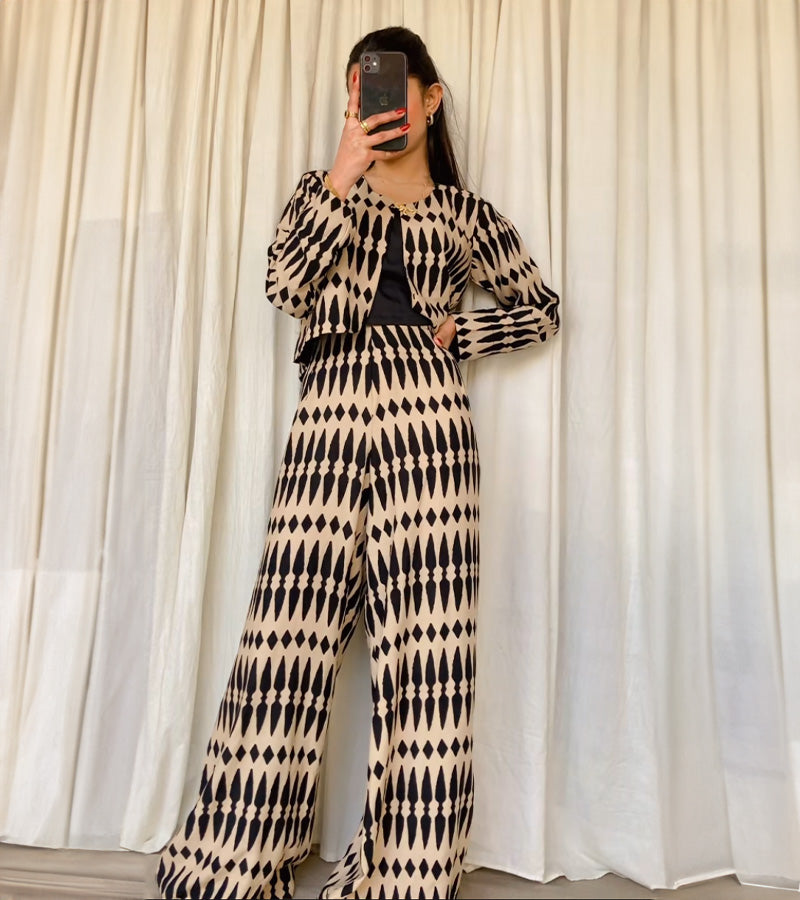 This chic western ensemble features a statement printed blazer, paired with a sleek Boski linen fabric inner for ultimate comfort and elegance. The look is completed with long, tailored pants, offering a perfect balance of contemporary flair and laid-back luxury. A must-have for the modern woman who values both style and comfort.