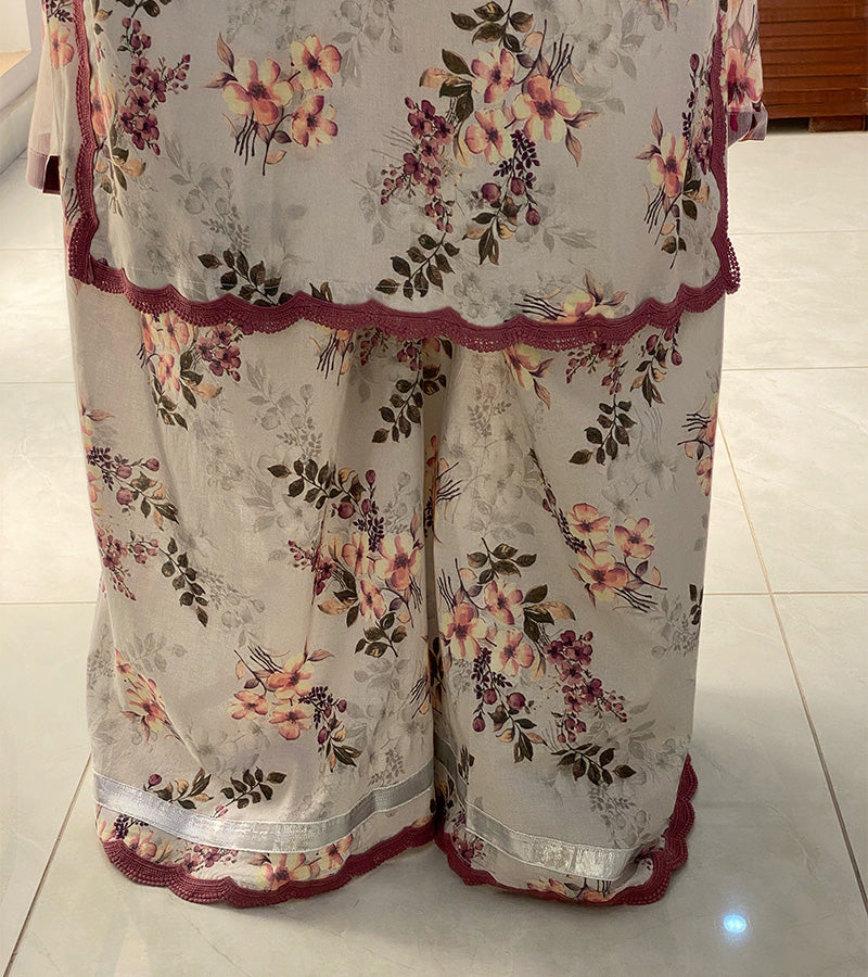 Plazo. Comfortable yet chic, featuring silver gotta work and lace trimming.