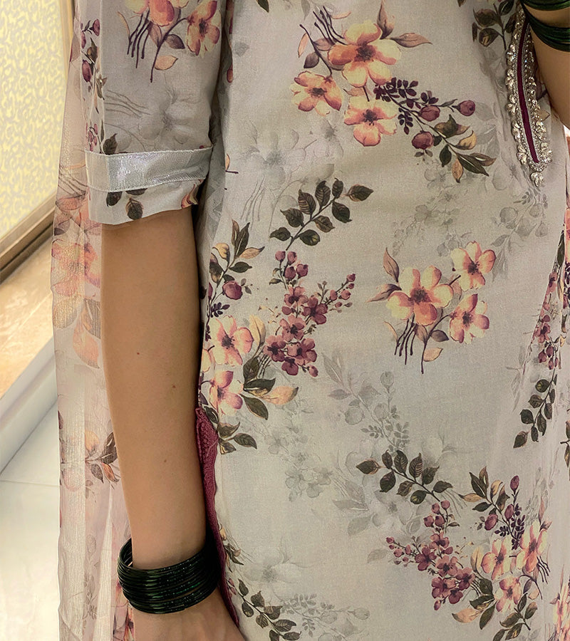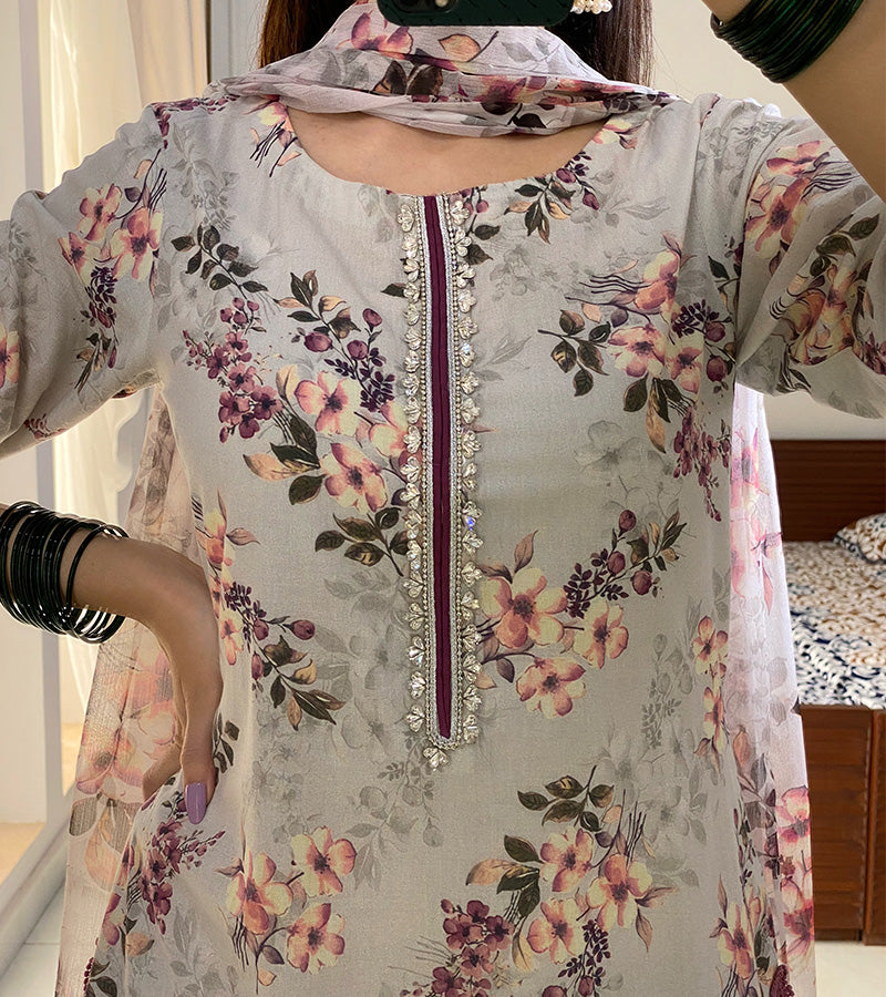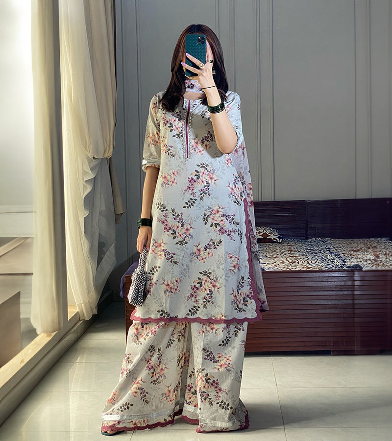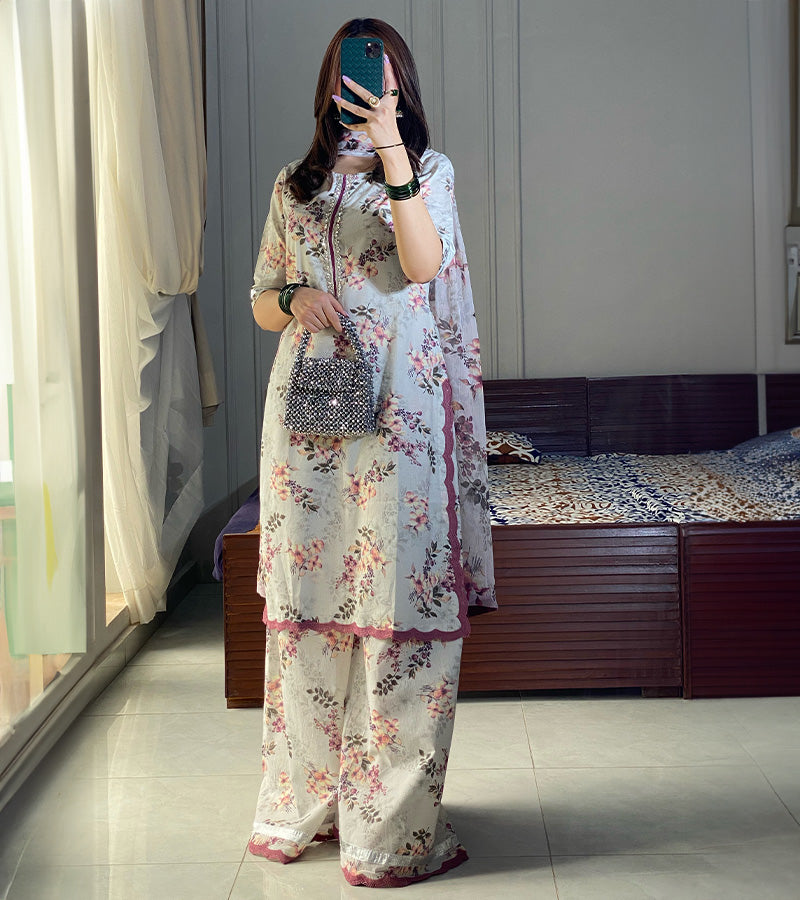 Dupatta: Lightweight chiffon with a soft, flowing print for a refined finish.