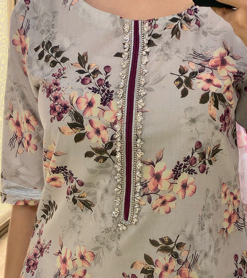 Shirt: Premium lawn with vibrant digital florals and a delicately fancy & elegant neckline.