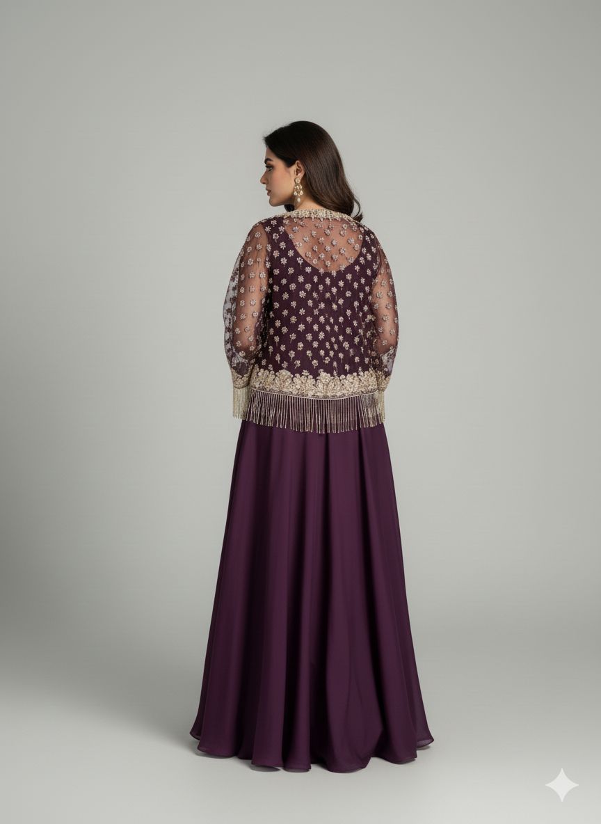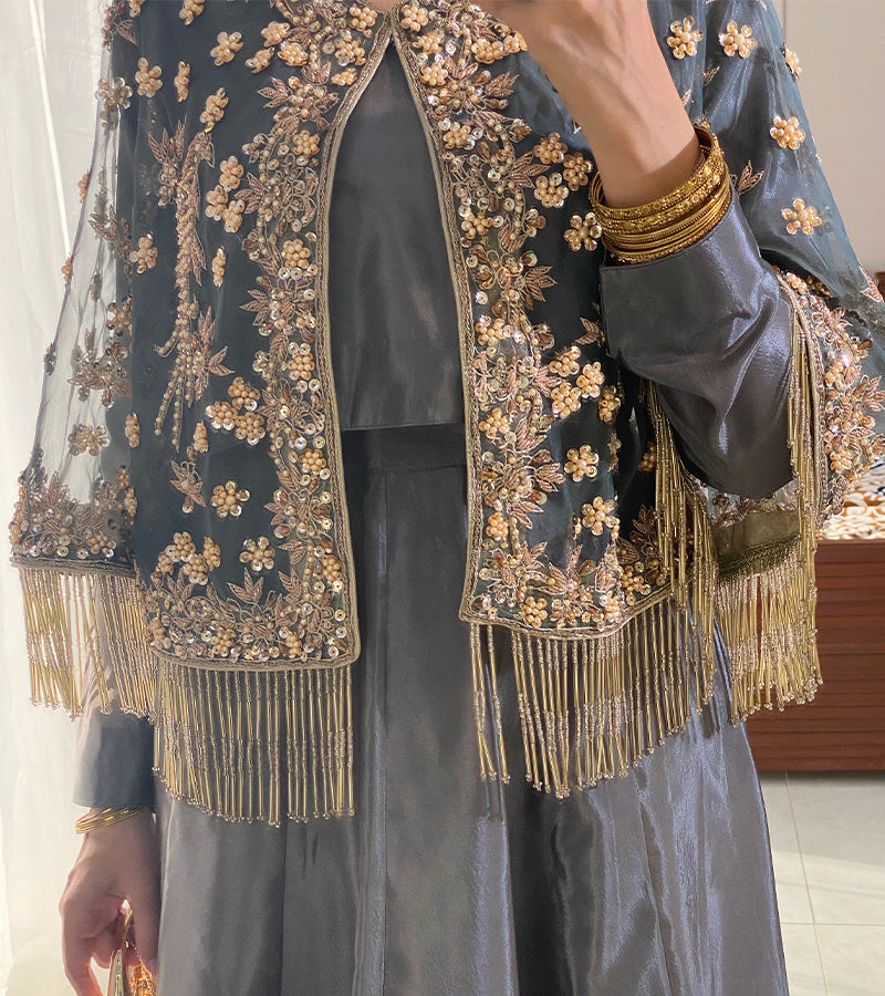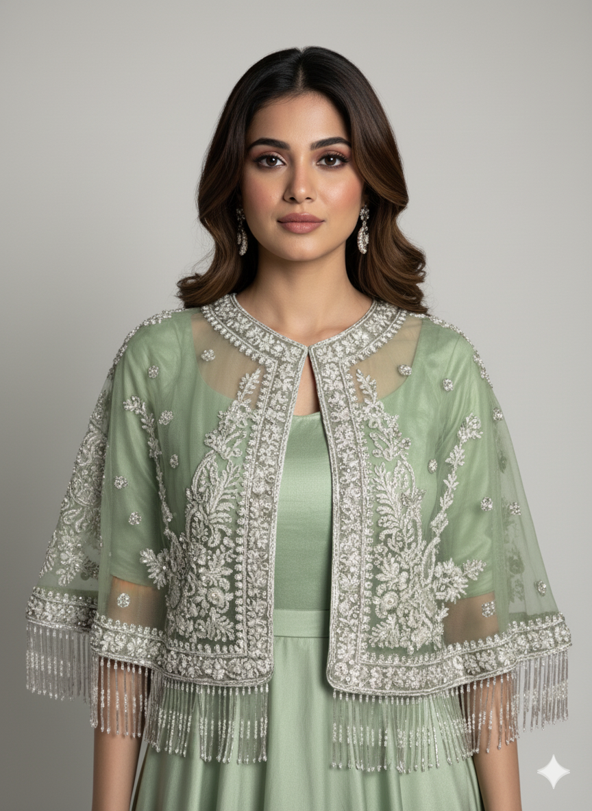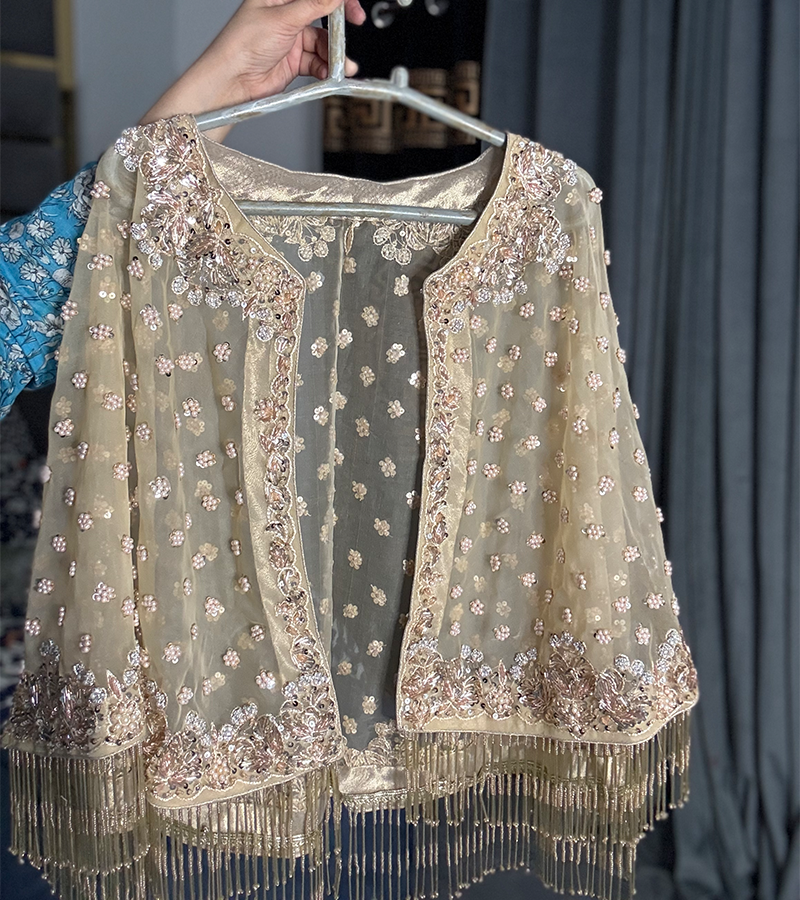 Product Details: 2 Piece Unstitched With Crop shawl Jacket